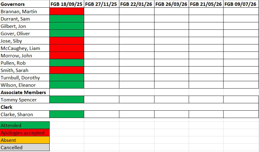 Governing Body meetings are held face to face at school at 6.30pm on the following dates. Members of the school community wishing to attend should contact the Clerk to Governors.
